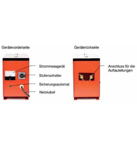 Das Gerät ist sehr robust und in der Praxis bereits bestens bewährt. Ausgestattet mit einer Kupferwicklung, welche für eine lange Lebensdauer in einem Elektroisolierharzsystem unter Vakuum imprägniert wurde. Eine einfache Bedienung mittels 4 Schaltstufen erleichtert die Arbeit.Überlastschutz und hohe Einschaltdauer gewährleisten professionelles Arbeiten.