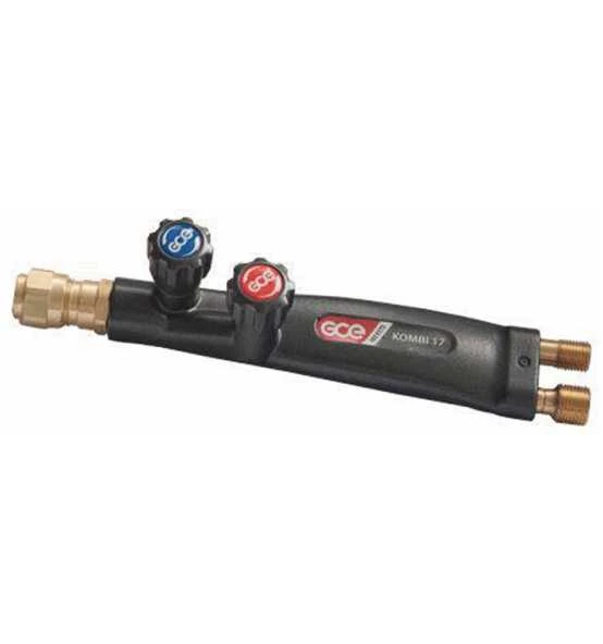 Lieferung erfolgt ohne Anschlussmutter Weitere technische Eigenschaften: · Schlauchanschluss: Sauerstoff: G 1/4″ RH Brenngas: G 3/8″ LH